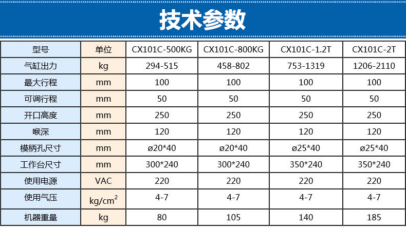 科鑫盟CX101系列气动冲床,又叫气动压力机,气啤机,以压缩空气为动力,噪音小,无污染环保, 结够简单,顺畅性能,及少维修,可根据产品或模具的大小调整工作高度